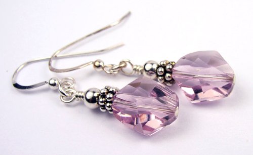 Damali , Lt. Amethyst - JUNE Birthstone Sterling Silver Swarovski Crystal Beaded Earrings. Flash and Sparke, understated yet elegant. A "go-anywhere" touch of color! These handmade beaded earrings are handcrafted with 100% genuine Swarovski Austrian crystals, .925 Sterling Silver . Not an Import, every item is handcrafted one at a time in our New Jersey USA Studio by jewelry designer Shirley L. Gordon.