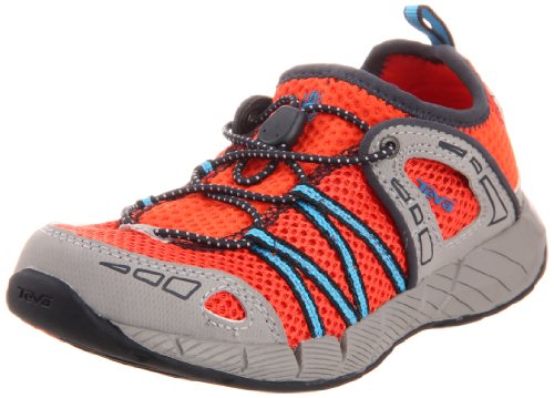 Teva Churn Water, The kid's Churn is a multi-sport shoe that specializes in getting wet. Its mesh upper is extremely breathable and quick-drying, making it the perfect shoe for those hot summer days when all you want to do is plunge into the water. T.I.D.E. GRIP Our Spider Original rubber is made to grip like crazy in wet environments A thin nylon shank keeps your foot stable and in control T.I.D.E. HYDRO Mesh materials drain water and dry quickly Drainage channels in the forefoot allow water to escape