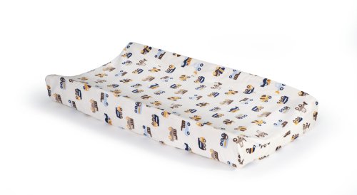 Carter's C615VPC, Keep your baby nice and comfy while changing with the Carter's Street Fleet velour changing pad cover featuring a light brown background with a multiple heavy truck print tossed all over. This cover features soft 100% polyester velour, elasticized at the ends for a smooth, tailored fit, accommodating a 32" x 16" changing pad. This item coordinates with the Carter's Street Fleet bedding collection (sold separately).